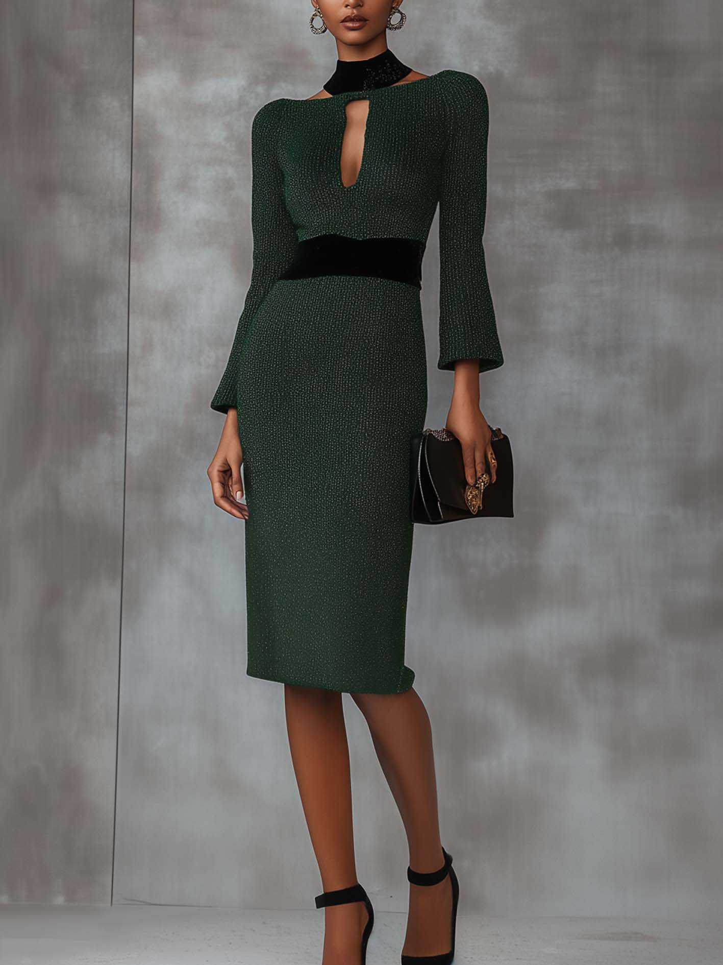Pair this dress with black pumps and a sleek handbag for a polished look. Add simple earrings or a bracelet to keep the ensemble elegant. Opt for a sleek hairstyle to highlight the dress's neckline detail.
