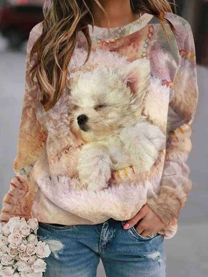 Fashion Dog Print Long-Sleeve Sweatshirt