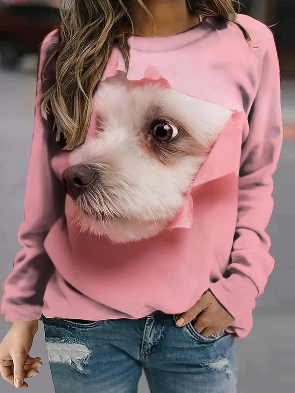 Fashion Dog Print Long-Sleeve Sweatshirt