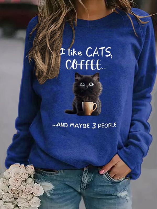 Women's I Like Cats And Coffee Print Casual Sweatshirt